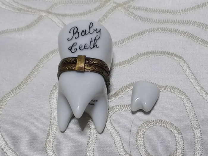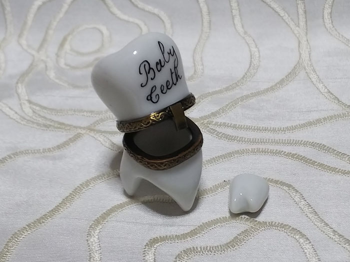 歯の形をしたリモージュボックス。乳歯などを保管されては如何でしょうか